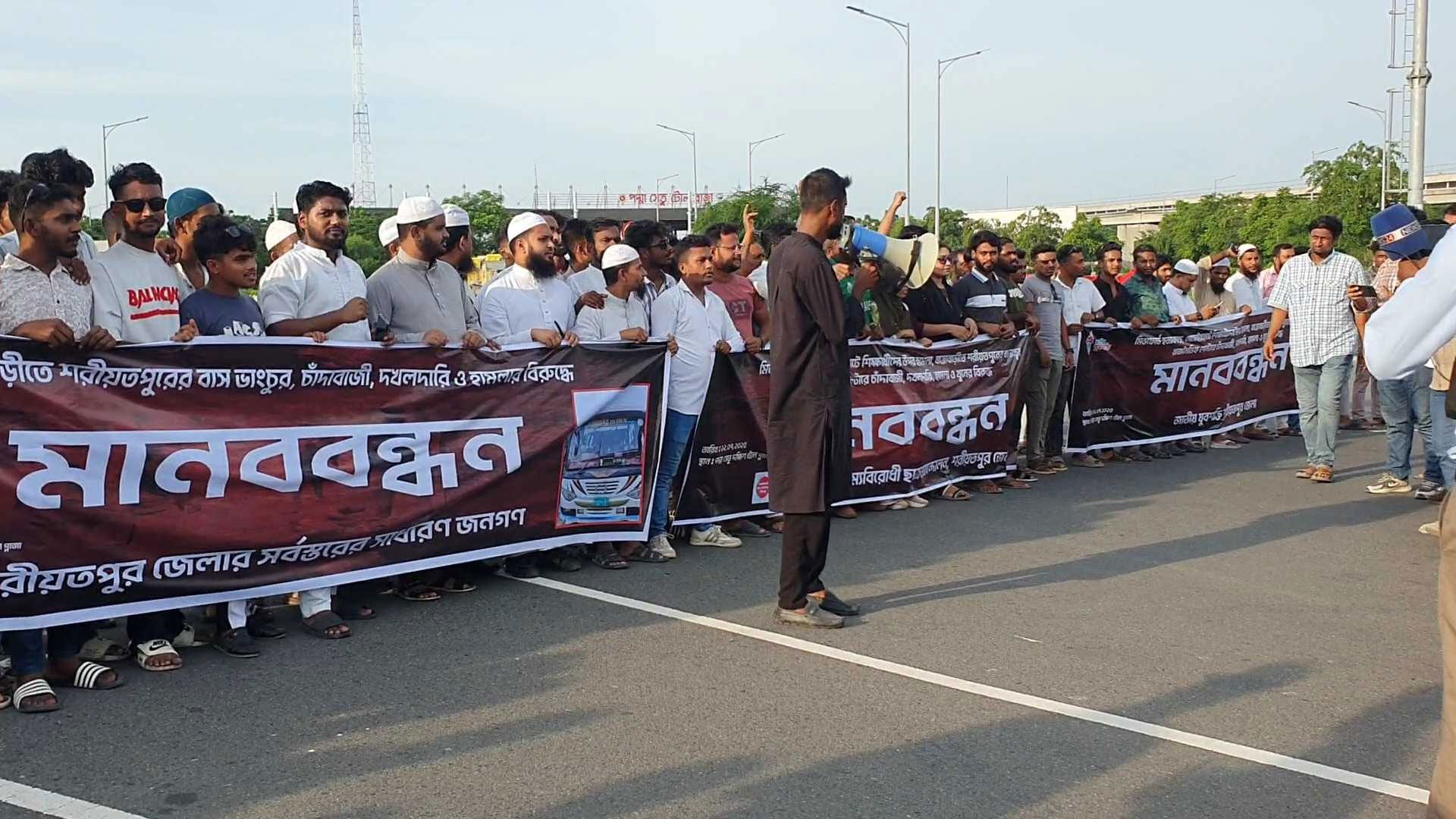 শরীয়তপুর প্রান্তের পদ্মা সেতুর টোল প্লাজা অবরোধ করে বিক্ষোভ।