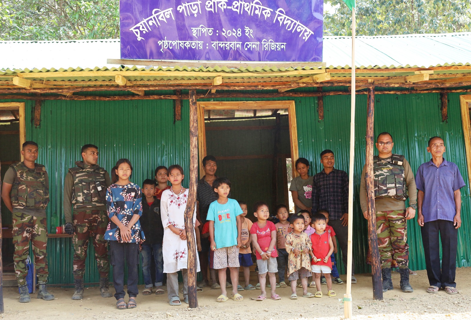 বান্দরবানের দূর্গম পাহাড়ে শিক্ষা বিস্তারে সেনাবাহিনীর স্কুল নির্মাণ